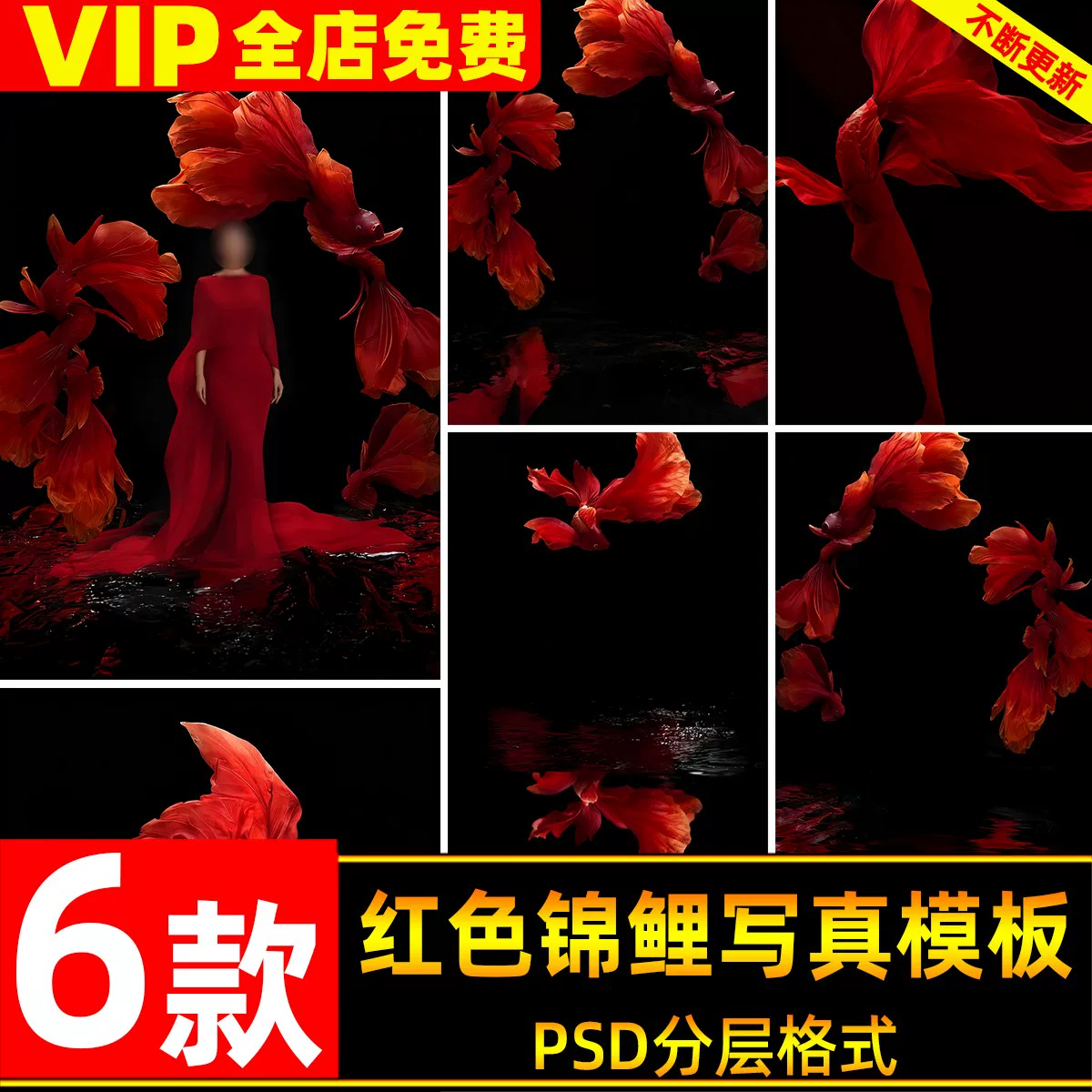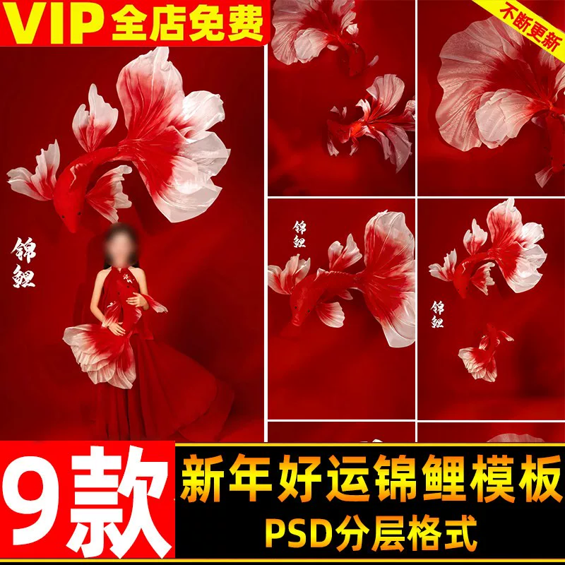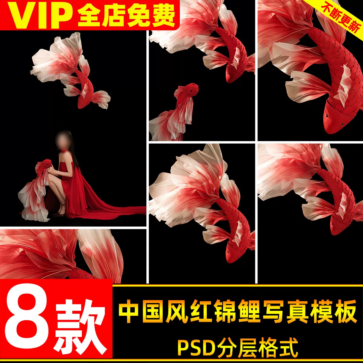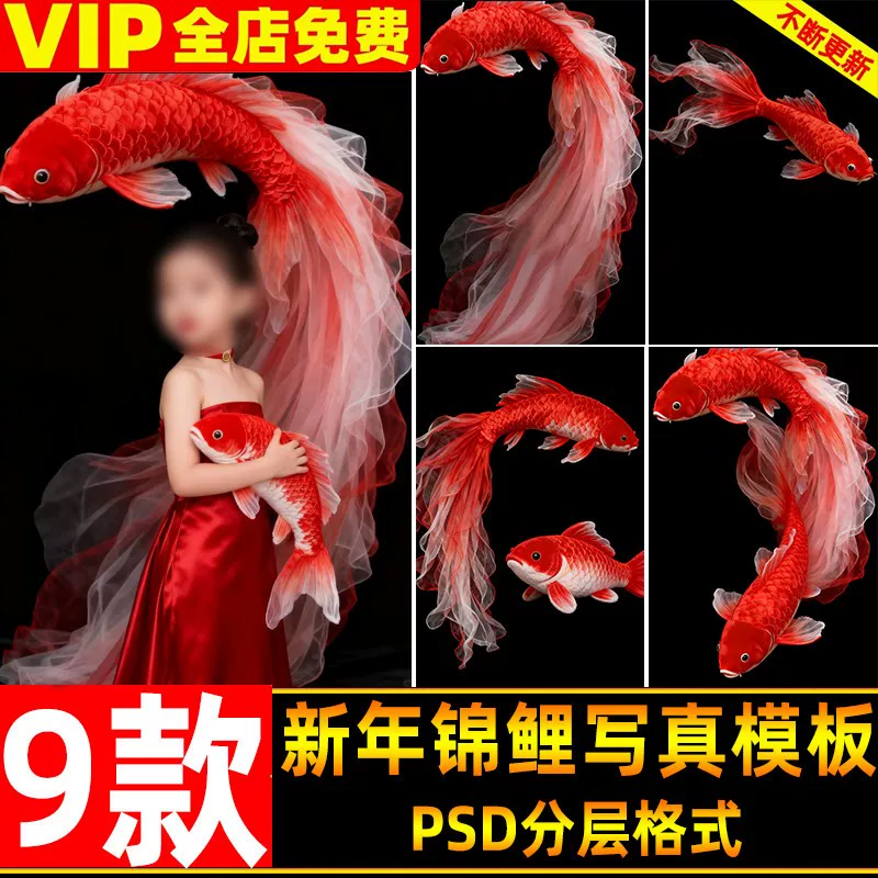 DL-014, Bộ 32 PSD tổng hợp mẫu cá chép Koi đỏ Tết may mắn – phong cách Trung Hoa, file PSD tách lớp