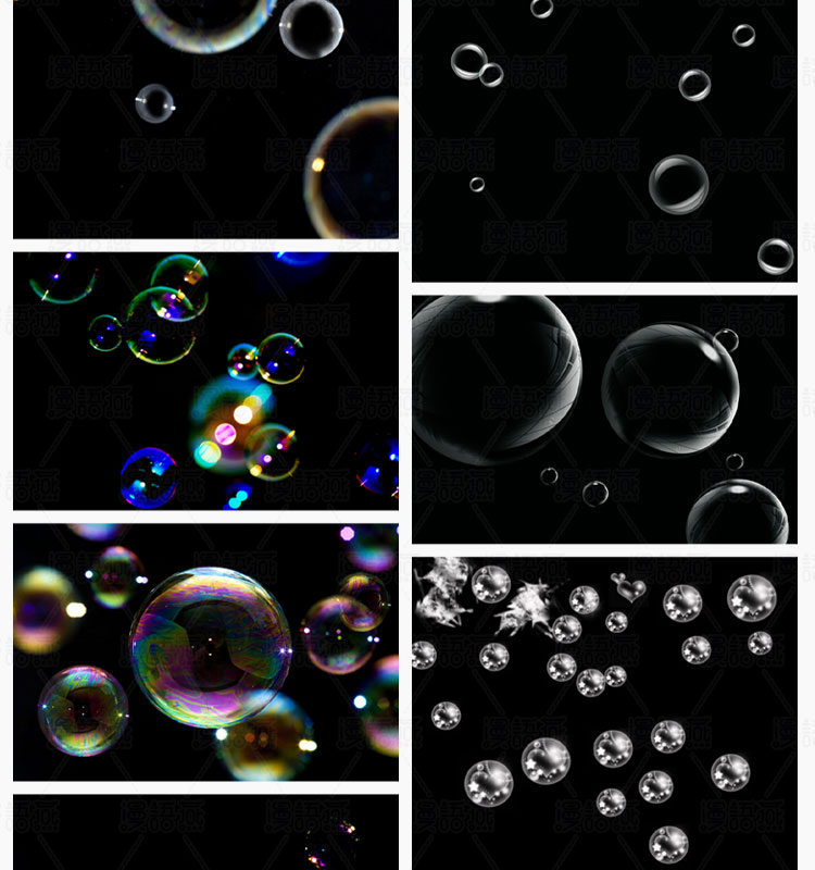 PSD-1598, Bộ 101 PSD + JPG vật liệu phủ studio ảnh album cưới bong bóng xà phòng màu trong suốt mơ màng