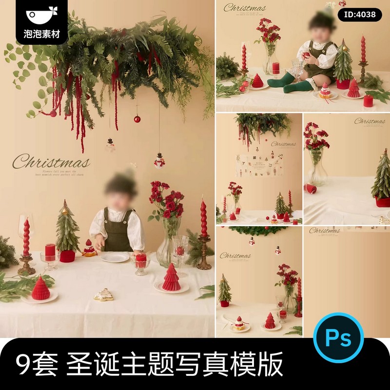 PSD-2755, Bộ 9 PSD mẫu vật liệu nền phong cảnh nội thất trong rừng chủ đề lễ hội Giáng sinh màu đỏ ghép ảnh trẻ em dễ thương