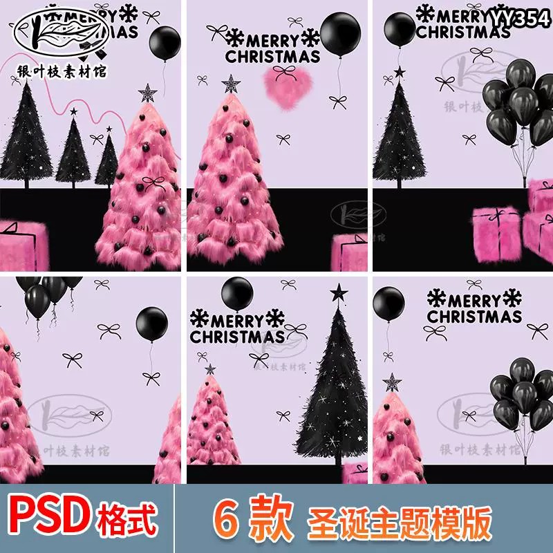 PSD-7883, Bộ 6 PSD tài liệu hậu kỳ photoshop chủ đề giáng sinh cho trẻ em, bạn gái, cây thông Noel studio hồng đen